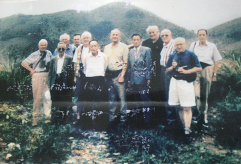 Ông Việt (đứng thứ 6 từ trái sang) thăm lại chiến trường xưa cùng các tướng lĩnh Pháp. Ảnh tư liệu.