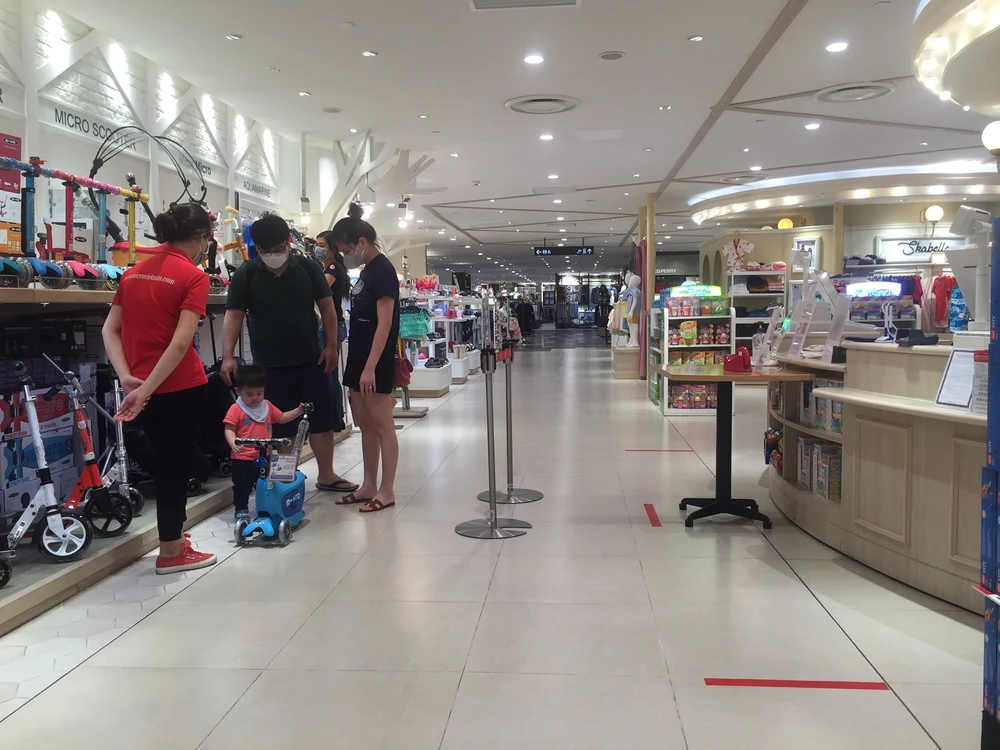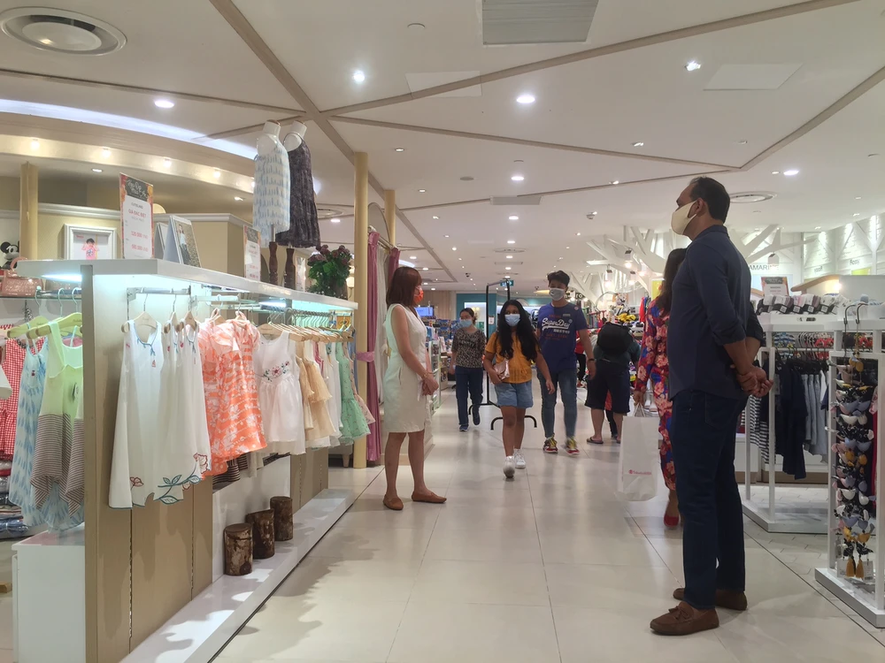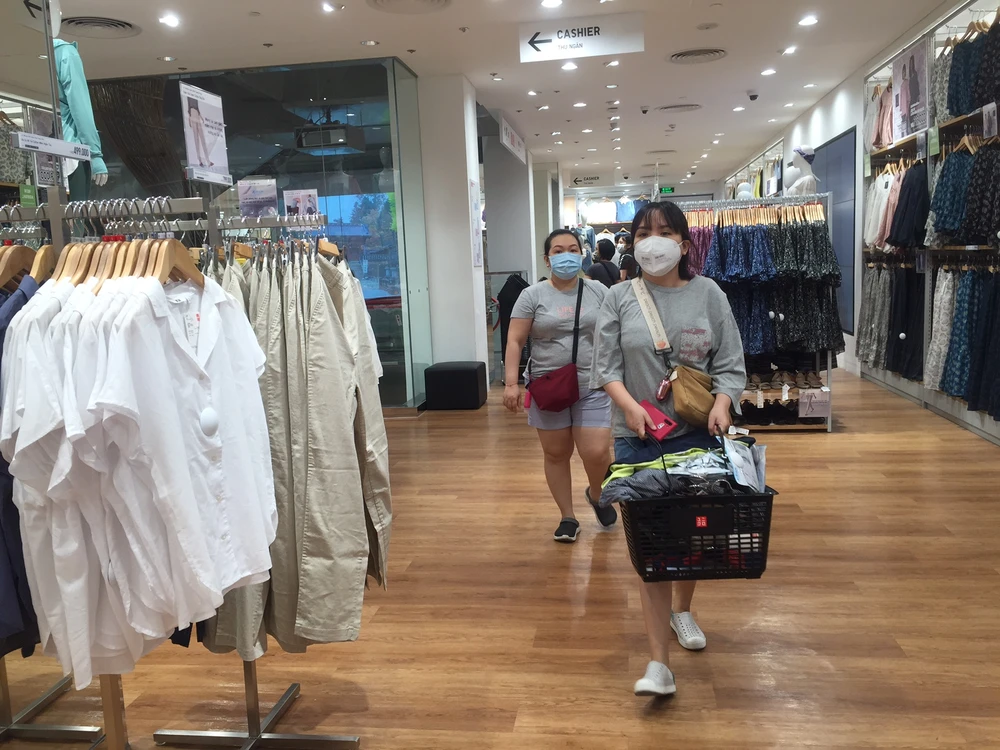 Trong khi đó tại TTTM Takashimaya, cửa hàng thời trang Uniqlo Việt Nam khu vực quận 1 đã có nhiều người dân đi mua sắm quần áo thời trang, mỹ phẩm, ăn uống.
