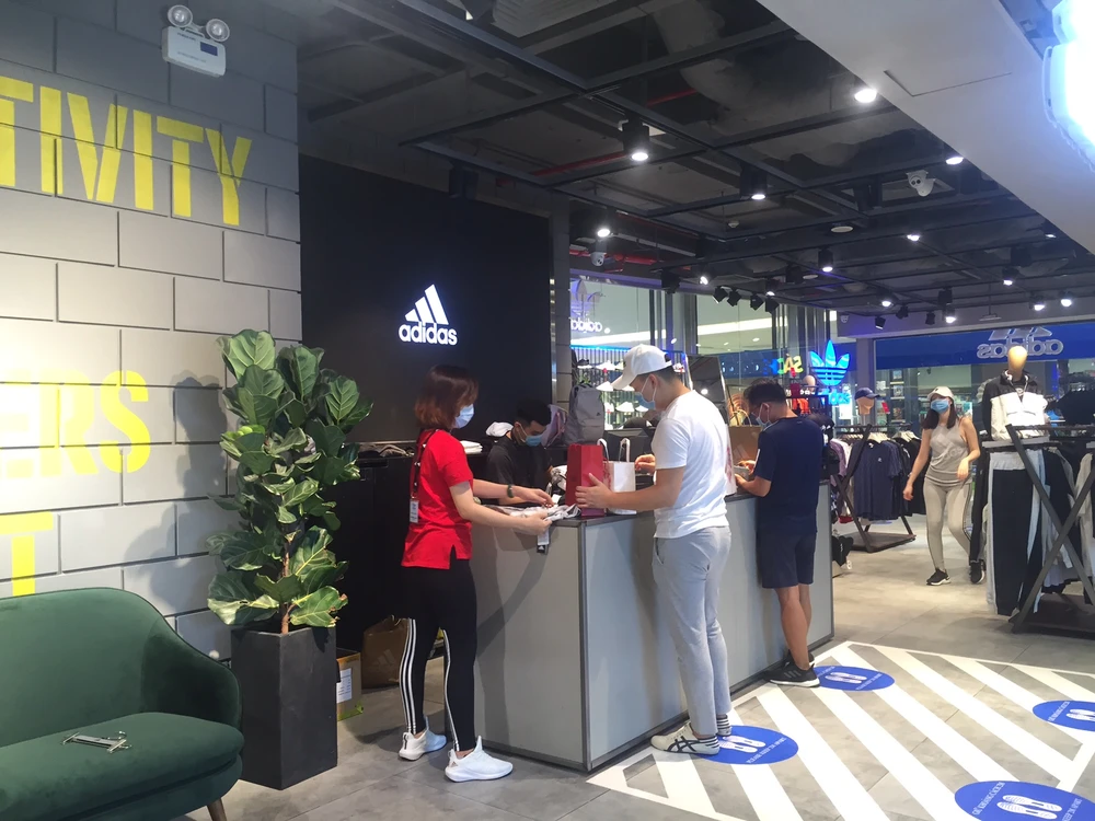 Người trẻ tranh thủ đi mua sắm tại cửa hàng giày quần áo thể thao