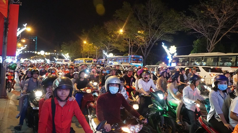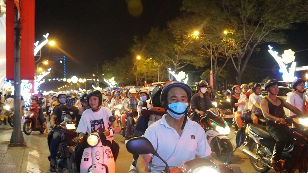 Vì là ngày lễ Giáng sinh nên số lượng người dân đi chơi lễ đổ dồn về khu vực này rất lớn. Ảnh: QUỐC VŨ