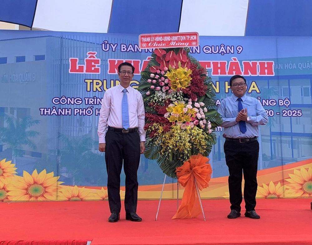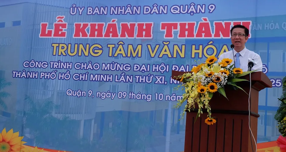 Phó Chủ tịch HĐND TP.HCM cho biết, lễ khánh thành và đưa vào sử dụng Trung tâm Văn hóa quận 9 hôm nay sẽ mở đầu cho nhiều công trình trên địa bàn quận được chính thức đưa vào sử dụng từ nay đến ngày khai mạc Đại hội đại biểu Đảng bộ TP như: Bến xe Miền Đông mới, Bệnh viện Ung Bướu cơ sở 2, Tàu Metro số 1 về tới depot Long Bình.