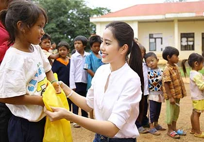 Hoa khôi Nam Em tự mình chuẩn bị quà cho các em dân tộc K’Ho ở Di Linh, Lâm Đồng. Ảnh: NHÂN PHAN