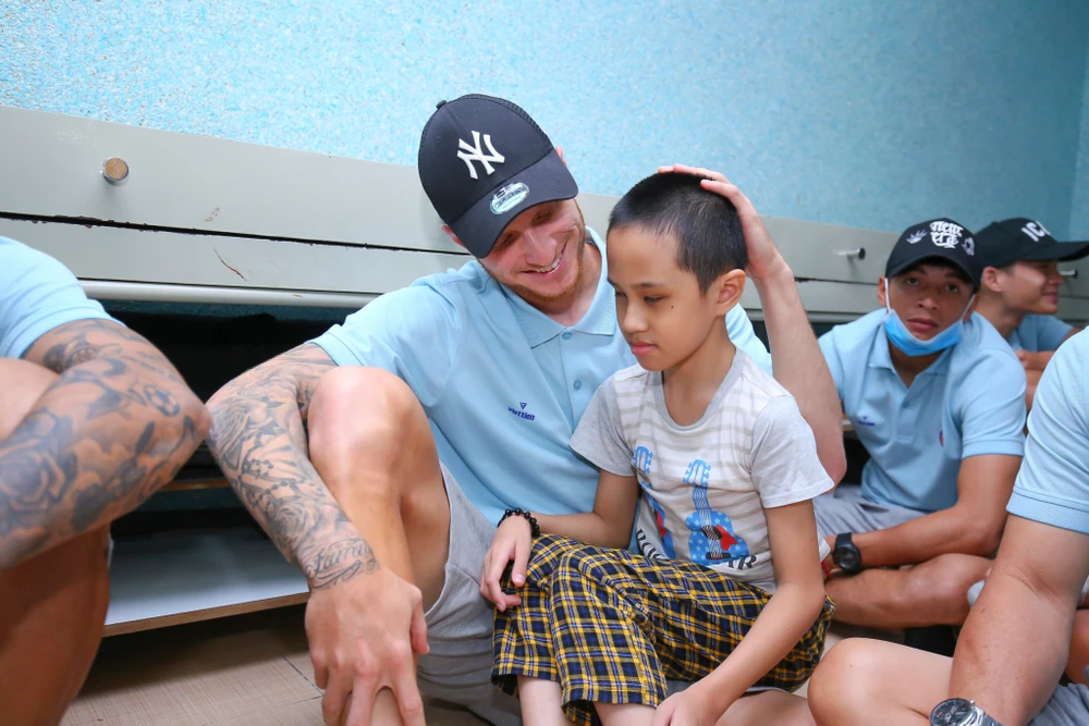 Ngoại binh Geovane Magno thân thiện với bé trai gặp hoàn cảnh chưa thuận lợi trong cuộc sống.