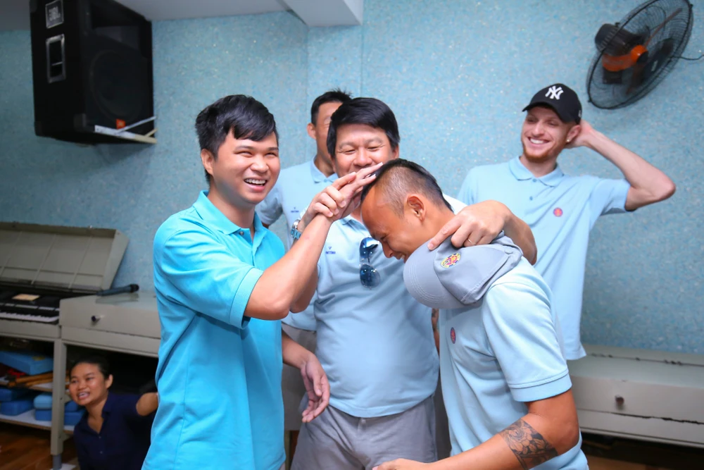 Sẽ thiếu sót nếu không nói đến chi tiết này. Vì “xem” (nghe) Sài Gòn FC thi đấu qua truyền hình, nên có em biết Saigon FC có cầu thủ Lê Quốc Phương để mái tóc kiểu “Mohican”, vì thế các em mong muốn được sờ vào đầu của anh Quốc Phương để cảm nhận được kiểu tóc mà bấy lâu nay các em chỉ được nghe.
