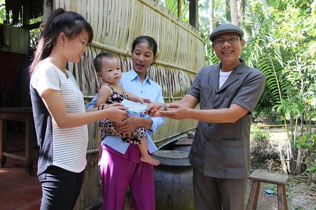 Nghệ sĩ Trung Dân trao 20 triệu tiền thưởng cho mấy mẹ con nghèo. Ảnh: Nghệ sĩ cung cấp