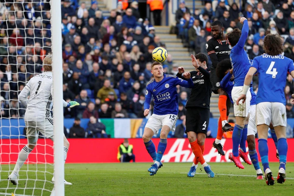 ... nhưng trung vệ Rudiger tiếp tục toả sáng bằng pha đánh đầu lập "cú đúp" giúp Chelsea rời sân King Power với 1 điểm bằng trận hoà 2-2.