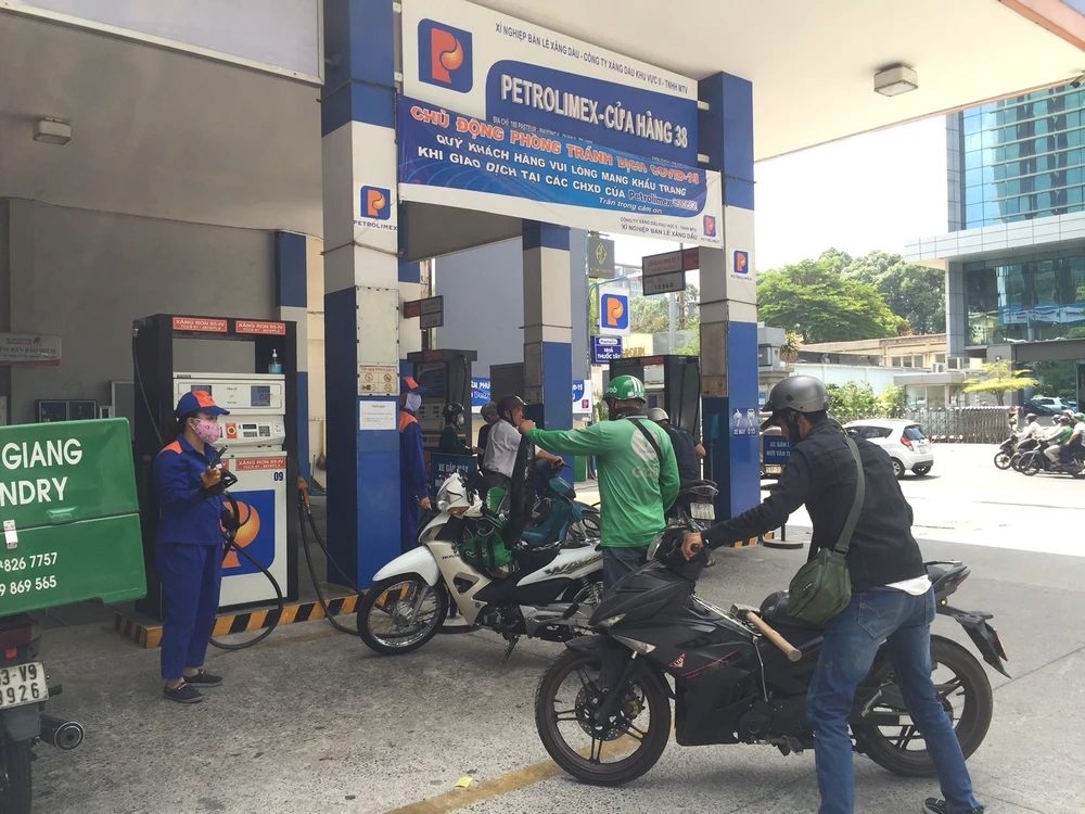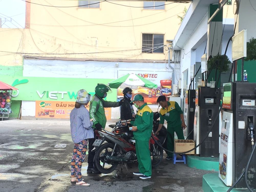 Khoảng 13 giờ, tại cửa hàng xăng Petrolimex 31, quận Phú Nhuận có vài khách ghé đổ xăng.