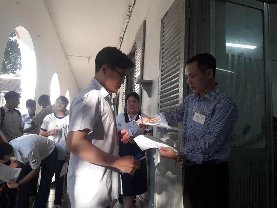 Thí sinh tại điểm thi trường THPT Nguyễn Việt Hồng (TP Cần Thơ) khá căng thẳng trong môn thi đầu tiên. Ảnh: CẨM GIANG