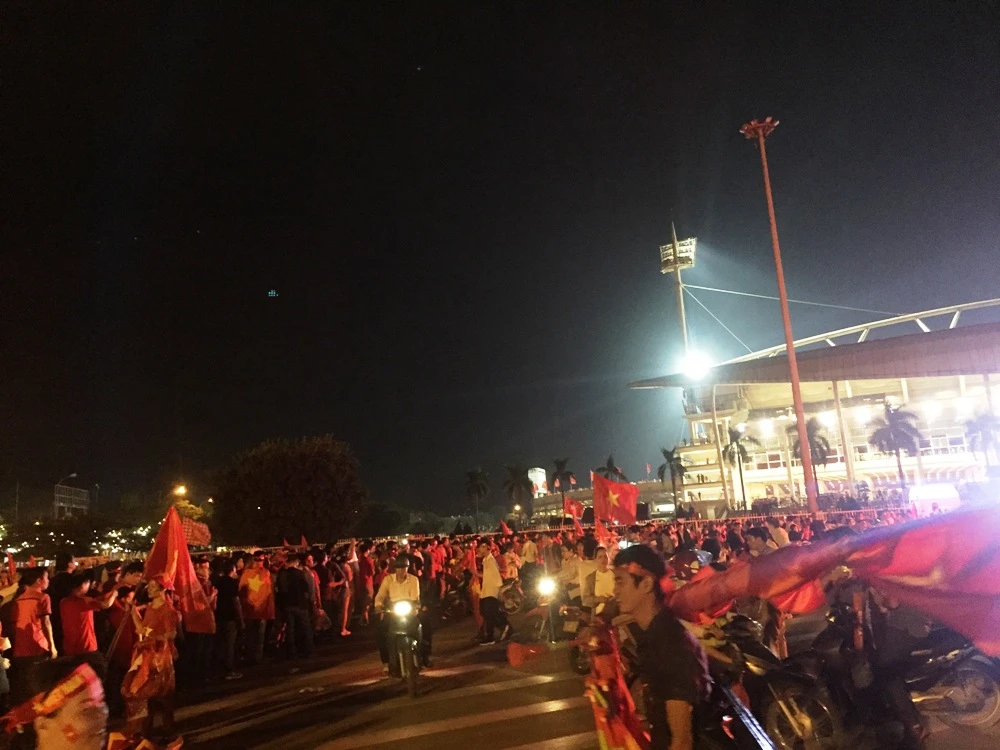 Không khí bên ngoài sân đã trở nên sôi động với sự tham gia của số đông người hâm mộ. Nhiều bãi giữ xe được lập lên ở nhiều nơi, giá phổ biến cho một lượt gửi là 50.000 đồng/xe. Mặc dù giá cao số lượng người gửi xe để vào sân vẫn rất đông.