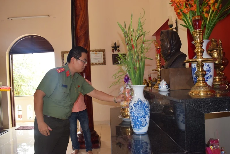 Đoàn thắp hương tại nhà tưởng niệm Mẹ VNAH Nguyễn Thị Rành