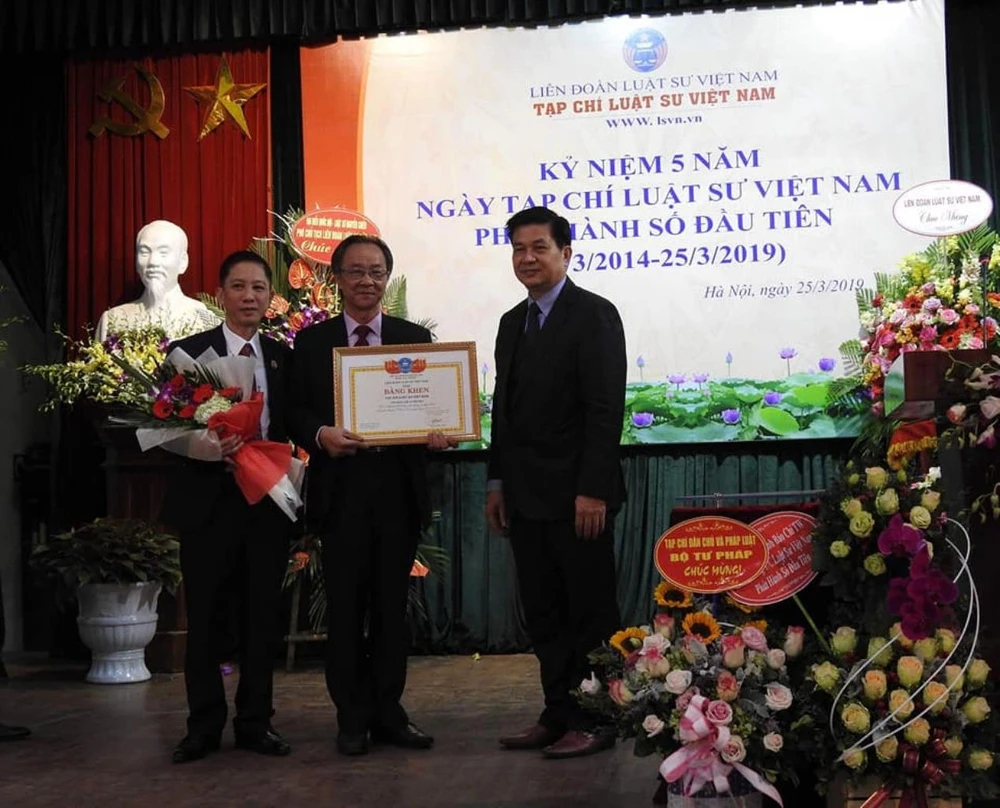 Tác giả - LS Nguyễn Minh Tâm (trái) tại buổi kỷ niệm bốn năm ngày phát hành tạp chí Luật sư Việt Nam. Ảnh: YẾN CHÂU