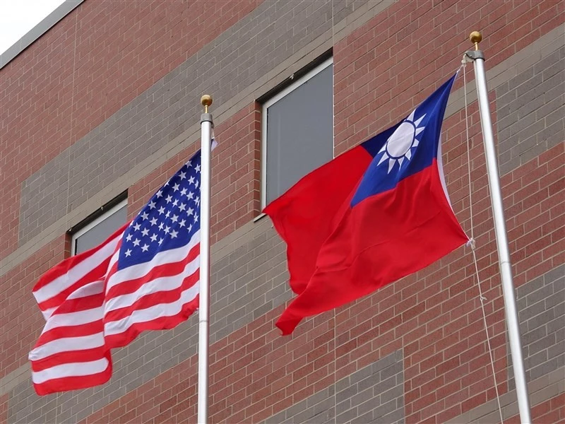 Cờ Mỹ và Đài Loan. Ảnh: CNA