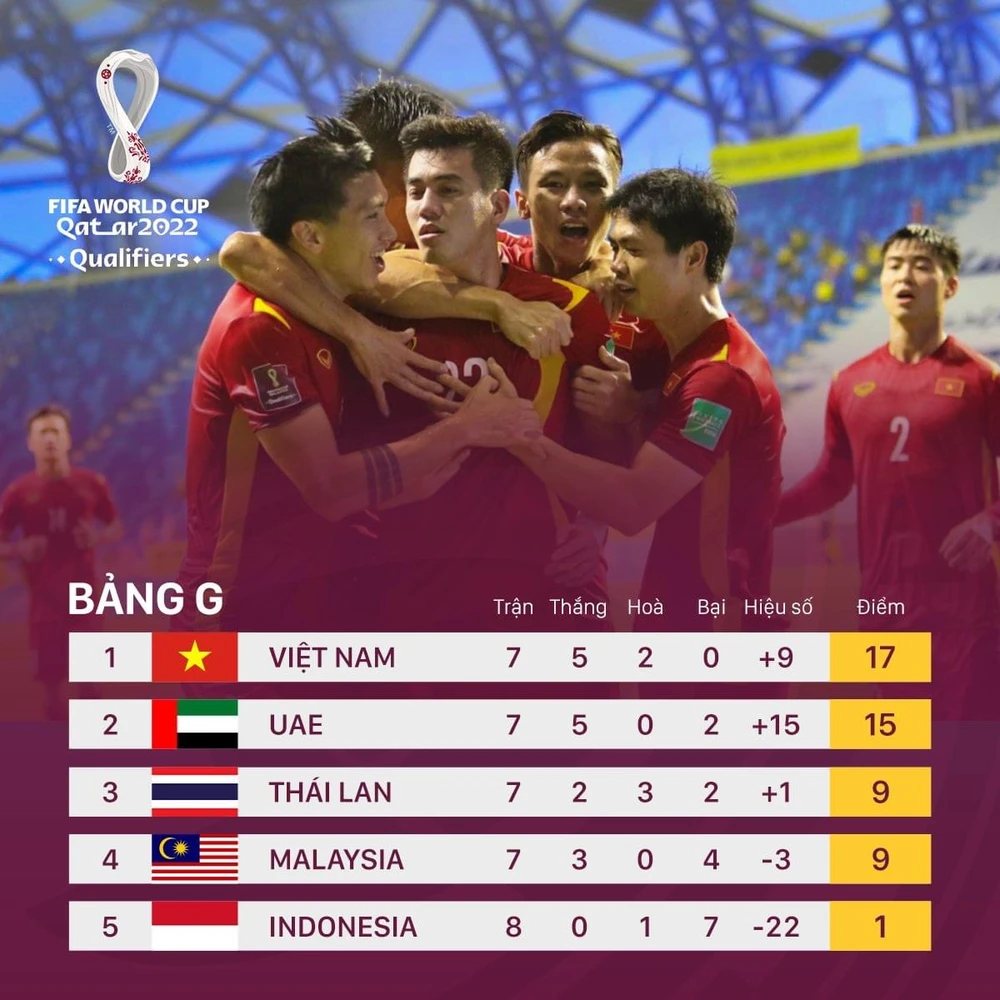 Đội tuyển Việt Nam trên đỉnh bảng xếp hạng.