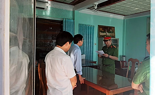CQĐT đọc lệnh bắt giữ ông Lam, chủ tịch huyện Đức Cơ. Ảnh: NAM PHONG