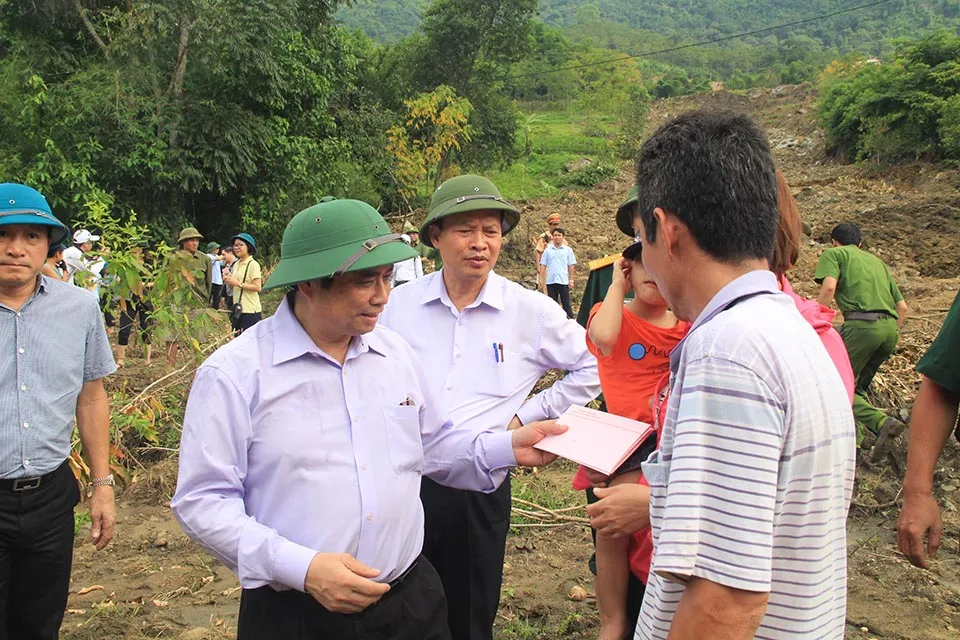 Chiều 8-9, ông Phạm Minh Chính đã vào đến tâm lũ Mường Lát, nơi bị thiệt hại nặng nề nhất trong đợt lũ vừa qua. Mưa lũ tại Mường Lát đã khiến hơn 100 ngôi nhà bị đổ sập hoàn toàn, hàng trăm ngôi nhà bị hư hỏng, sạt lở khắp nơi, giao thông chia cách, cô lập.