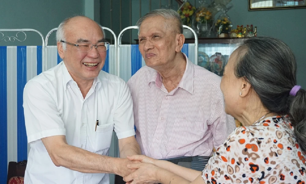 Trưởng ban Tuyên giáo Thành ủy TP.HCM tới thăm gia đình cố GS. Vũ Đình Hòe. Ảnh: NGUYỄN QUYÊN