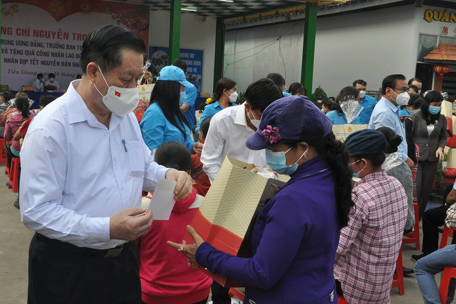 . Cùng ngày, Trưởng Ban Tuyên giáo Trung ương cùng đoàn công tác Trung ương đã đến trao tặng quà tết cho 450 hộ gặp khó khăn do bị ảnh hưởng bởi dịch COVID-19 trên địa bàn TP. Mỹ Tho, huyện Gò Công Tây, Gò Công Đông, tỉnh Tiền Giang.