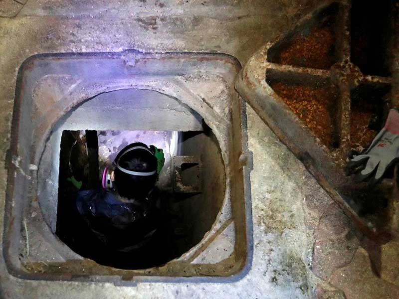 Người biểu tình nhảy xuống cống nước tìm đường thoát ra khỏi Trường ĐH Bách khoa tối 19-11. Ảnh: REUTERS