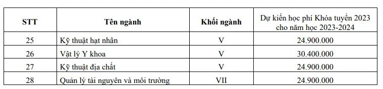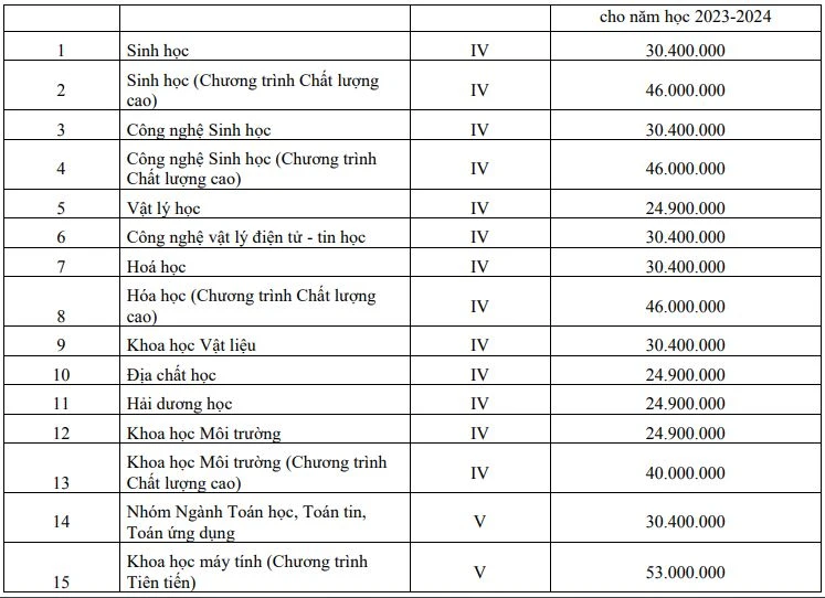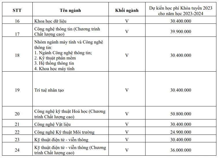 Mức thu học phí dự kiến từng ngành hệ ĐH chính quy năm học 2023-2024 như sau: