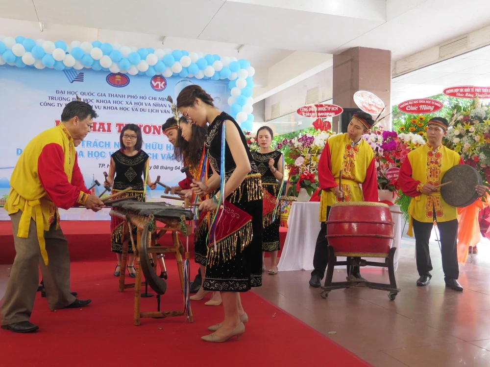 Một tiết mục với dàn nhạc dân tộc hấp dẫn biểu diễn tại buổi lễ.