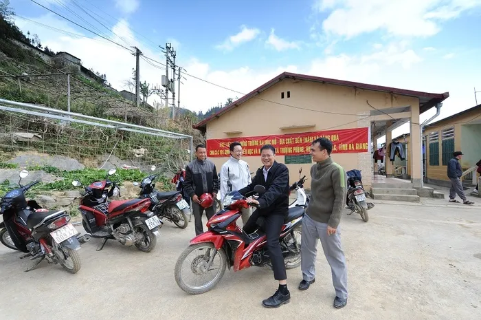 Ông Lê Hải An vui vẻ trong một lần thiện nguyện ở Hà Giang