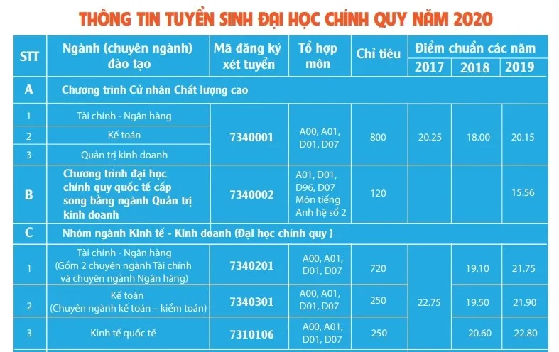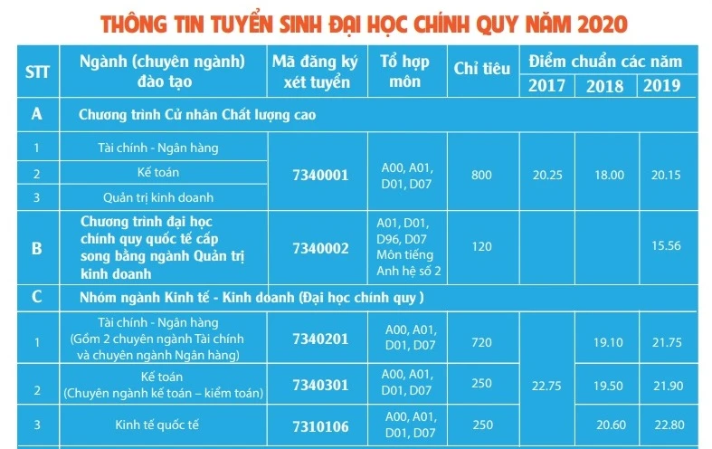 Trường ĐH Ngân hàng TP.HCM vừa chính thức công bố kế hoạch tuyển sinh ĐH chính quy năm 2020.