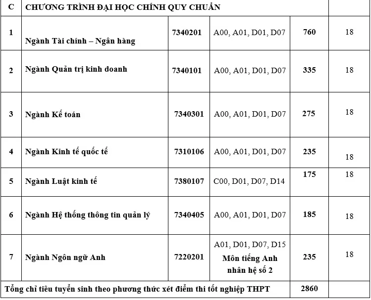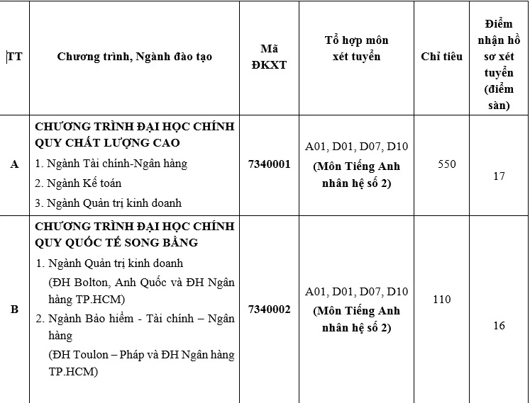 Chương trình đại học chính quy chất lượng cao, trường cũng nâng thêm một điểm là 17 điểm, thay vì 16 điểm như trước đó. Thí sinh xét tuyển theo chương trình, sau khi trúng tuyển sẽ chọn ngành theo nguyện vọng.