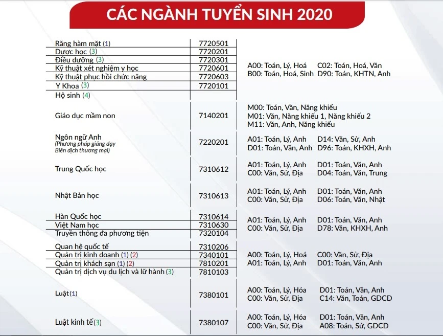 NGND-PGS-TS Hồ Thanh Phong, Hiệu trưởng nhà trường, cho biết một trong những điểm mới của năm 2020 là trường dự kiến sẽ mở thêm 11 ngành học mới, nâng tổng số ngành học mà trường này đang đào tạo lên 48 ngành. Trong đó, trường chú trọng đến những ngành mà xã hội đang có nhu cầu cao, cụ thể như hộ sinh, y đa khoa, cử nhân sức khỏe răng miệng, Digital Marketing, quản lý tài nguyên và môi trường, kỹ thuật y sinh, quản lý công nghiệp, trí tuệ nhân tạo (AI), công nghệ sinh học, kỹ thuật cơ điện tử, kỹ thuật hạ tầng đô thị.