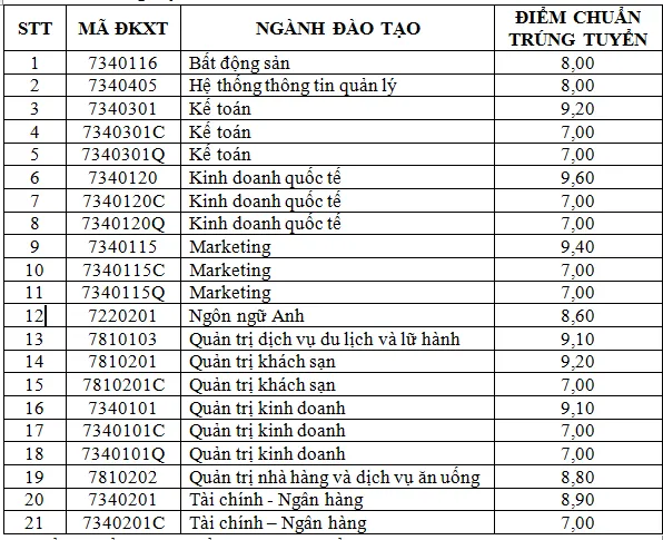 Điểm chuẩn trúng tuyển vào các ngành của ĐH Tài chính- Marketing.