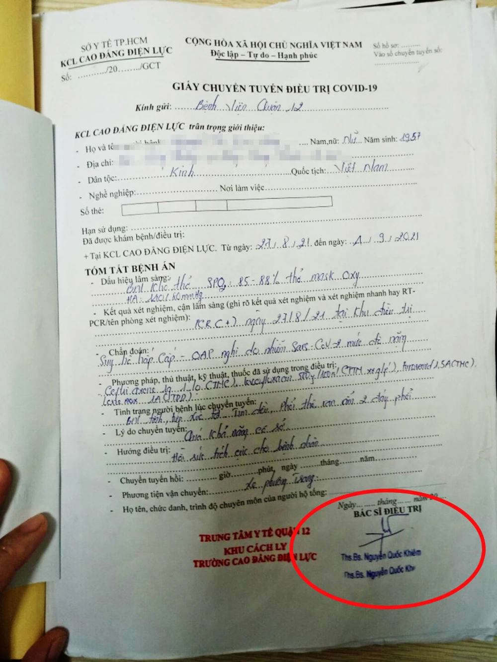 Một giấy chuyển tuyến có bút phê và chữ ký của Khiêm. Ảnh: PV