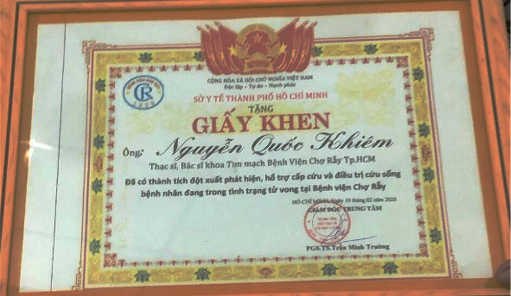 Giấy khen giả mà Khiêm tự tạo ra. Ảnh: PV