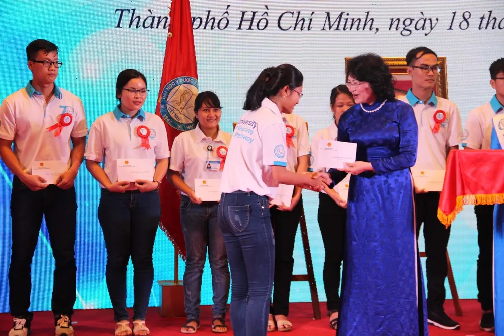 Nhân dịp này, Phó Chủ tịch nước Đặng Thị Ngọc Thịnh trao 30 suất học bổng cho sinh viên đang theo học ĐH Y Dược TP.HCM.