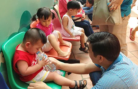 Cần cho trẻ uống nhiều nước trong những ngày nóng như thế này. Ảnh: TÙNG SƠN