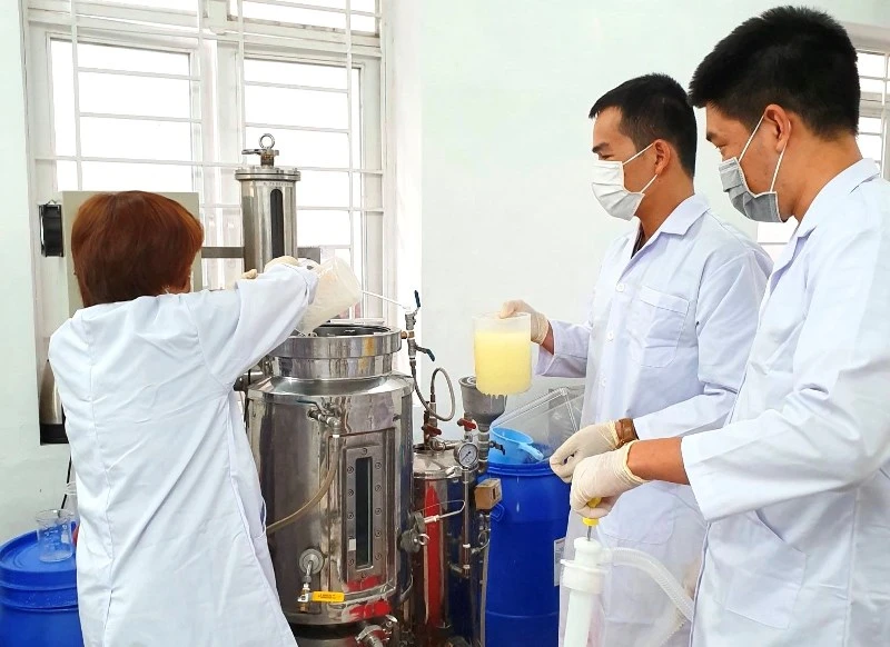 Nhóm nghiên cứu của Trường ĐH Bách khoa đang điều chiết dung dịch rửa tay để phục vụ nhu cầu sử dụng trong trường.