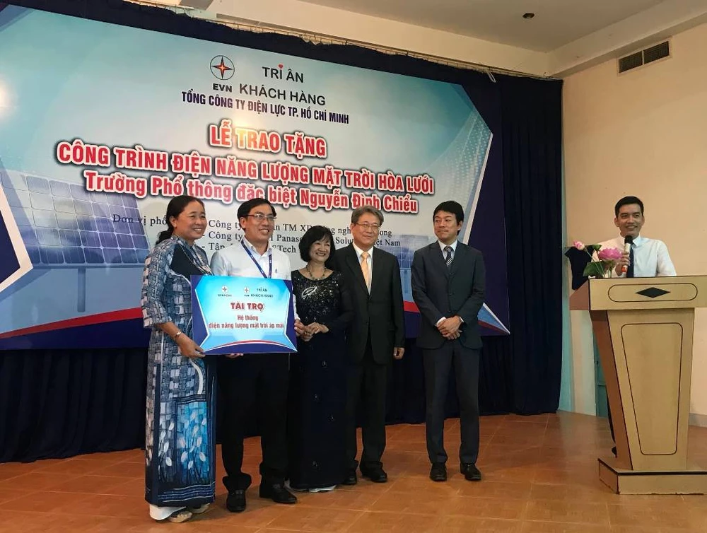 Tổng Công ty Điện lực TP.HCM trao tặng công trình điện năng lượng mặt trời hòa lưới cho Trường THPT đặc biệt Nguyễn Đình Chiểu.