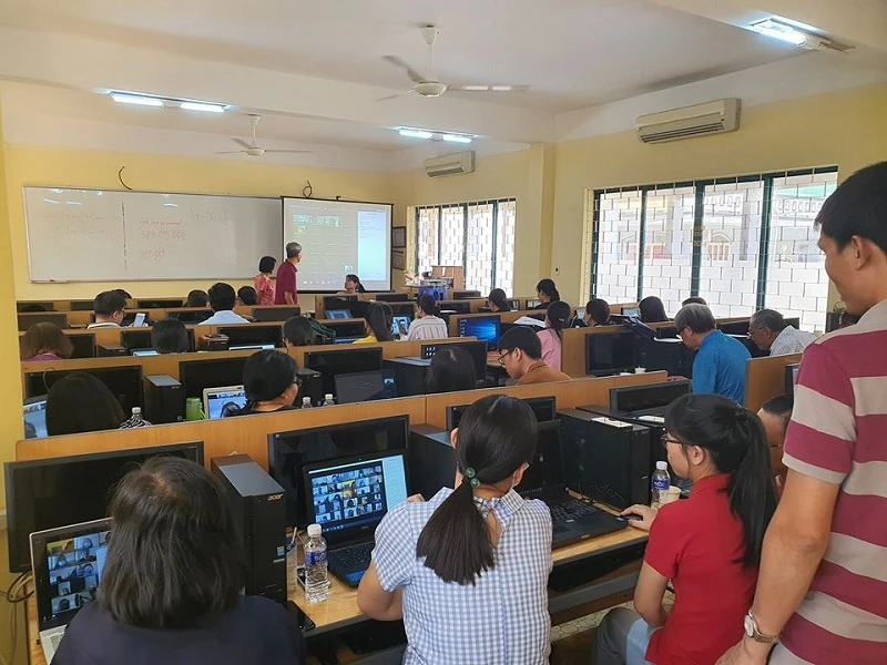Trường THCS - THPT Ngôi Sao tập huấn cho giáo viên về dạy học trực tuyến. Ảnh: NTCC