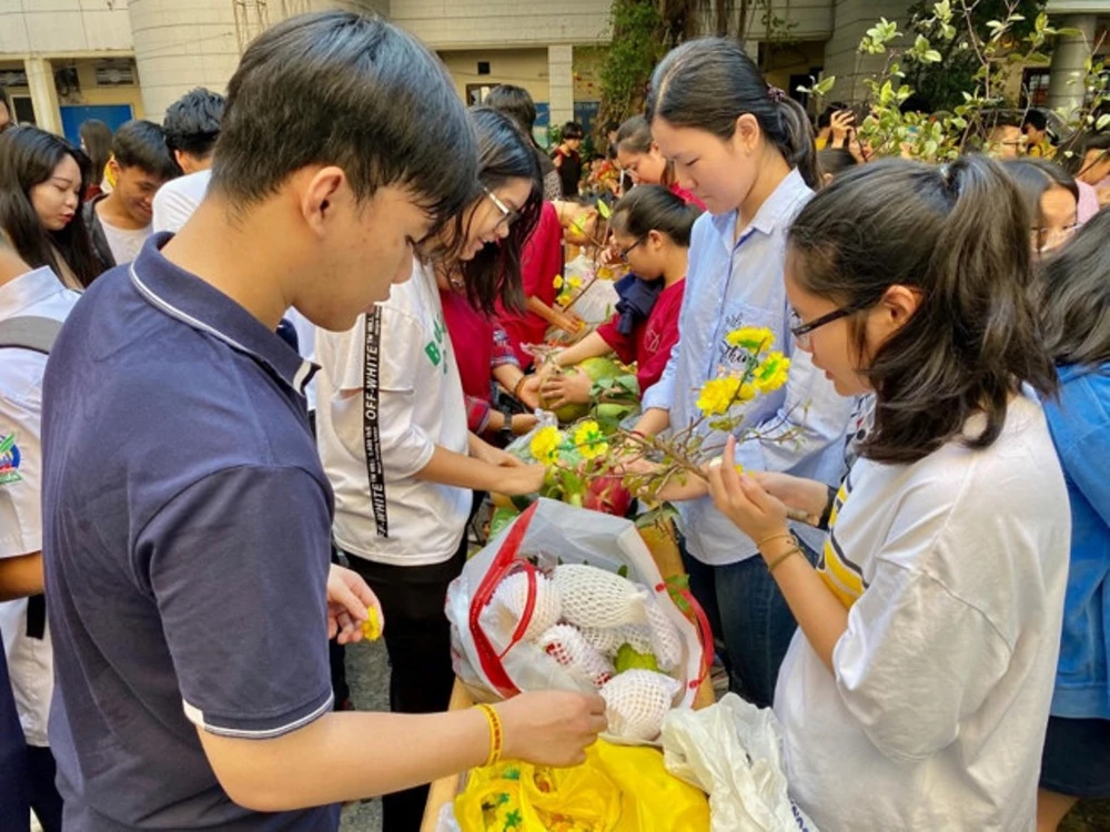 Những ngày này, sân Trường THPT Bùi Thị Xuân, quận 1 cũng ngập tràn trong không khí của tết cổ truyền. Các em thi gói bánh chưng, viết thư pháp, thi trang trí mâm cỗ ngày tết. Nhà trường còn tổ chức đêm hội Xuân yêu thương nhằm gây quỹ khuyến học. Dịp này, trường tặng hơn 70 suất học bổng cho học sinh có hoàn cảnh khó khăn, mỗi suất trị giá 2 triệu đồng.