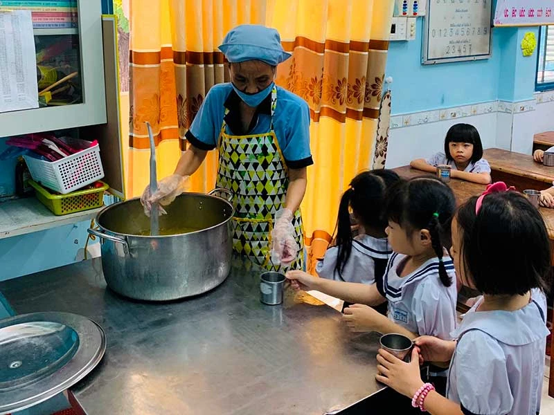 Trước diễn biến thời tiết phức tạp, nắng kéo dài, các trường cũng có những phương án để đảm bảo sức khỏe cho học sinh (HS). Theo bà Nguyễn Kim Phượng, Hiệu trưởng Trường Tiểu học Nguyễn Thị Minh Khai, quận Gò Vấp, đối với HS bán trú, vào buổi chiều các em được uống nước giải nhiệt như nước sâm, nước tắc. Còn trước giờ ra chơi nửa tiếng, bảo vệ và nhân viên phục vụ sẽ lấy vòi nước xịt khắp sân trường để giảm độ nóng. “Vào giờ ra chơi, thay vì chơi những trò chơi vận động, nhà trường mở tivi ngoài sân, kéo các mái hiên lại để các em ngồi trong hành lang xem” - bà Phượng nói.