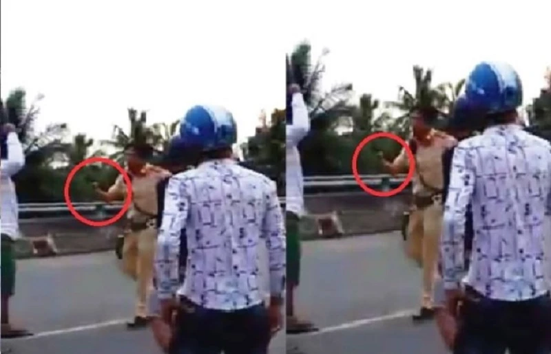 Sau đó, CSGT này đứng dậy tháo nón bảo hiểm và bất ngờ rút súng, một số người có mặt tại hiện trường phản ứng cho rằng: “Công an đánh dân”...