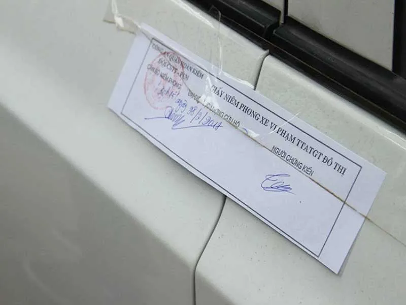 Trước khi cẩu, lực lượng chức năng phải tiến hành niêm phong, ghi nhận hiện trạng phương tiện. Ảnh: TUYẾN PHAN