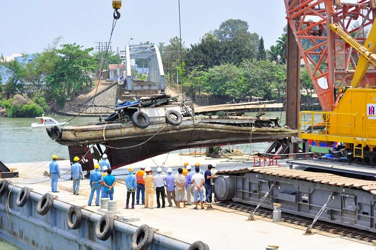 Như đã đưa tin, trưa 30-3, đội trục vớt cầu Ghềnh thuộc Công ty Xây dựng Công trình Giao thông 1 (Bộ GTVT) đã tiến hành trục vớt thành công tàu đẩy sà lan đâm sập cầu Ghềnh.