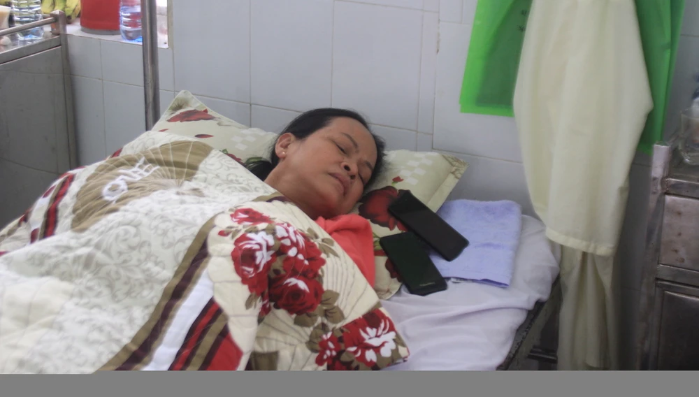 Bà Lan đau đớn nằm điều trị và đi lại phải nhờ người thân dìu. Ảnh: LÊ PHI
