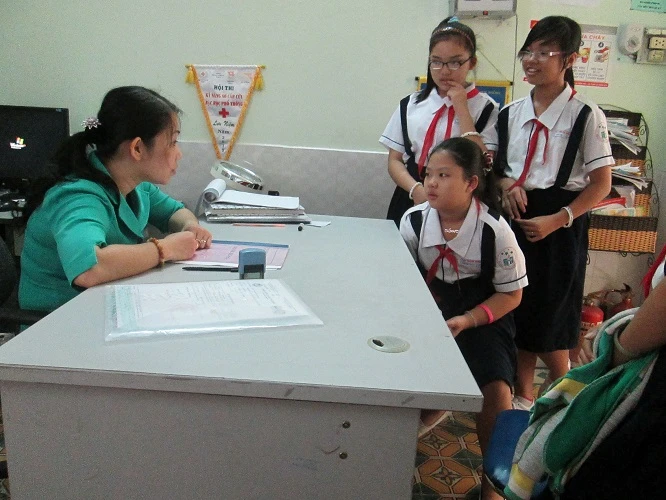 HS trường THCS Chánh Hưng, quận 8 khám sức khỏe tại phòng y tế của trường