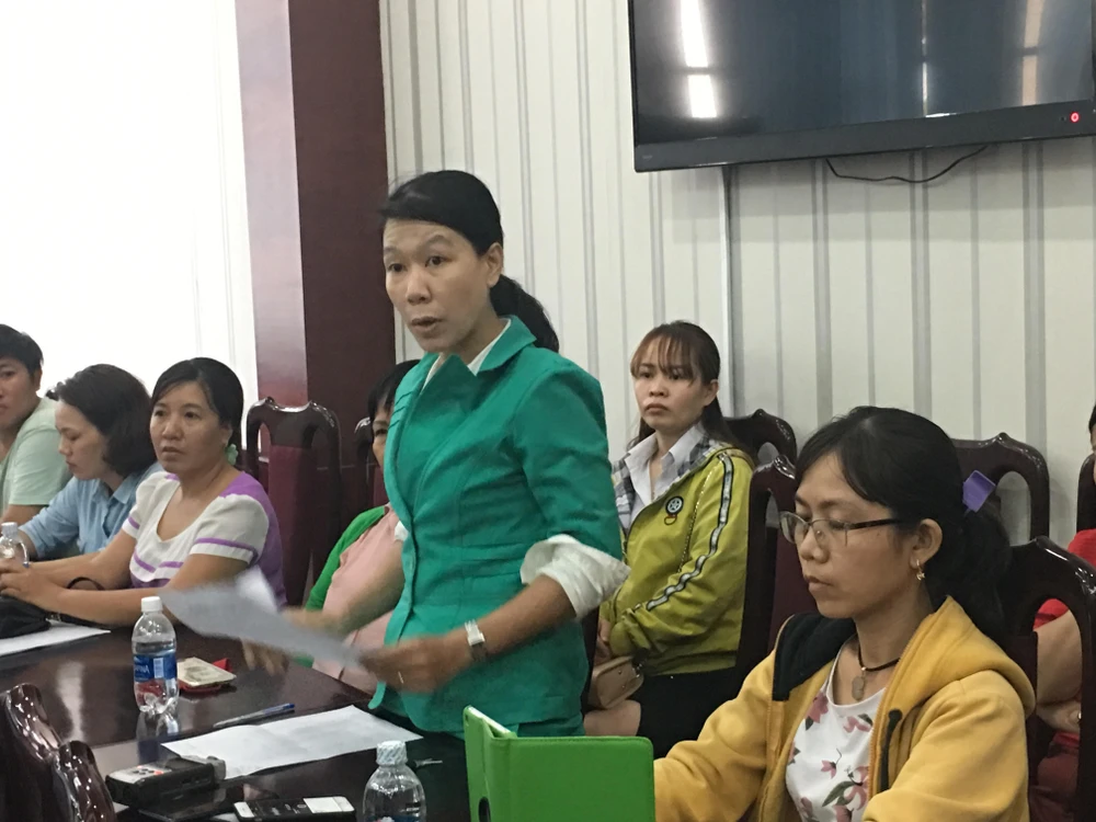 Một phụ huynh có ý kiến tại buổi họp. Ảnh: KHÁNH LY