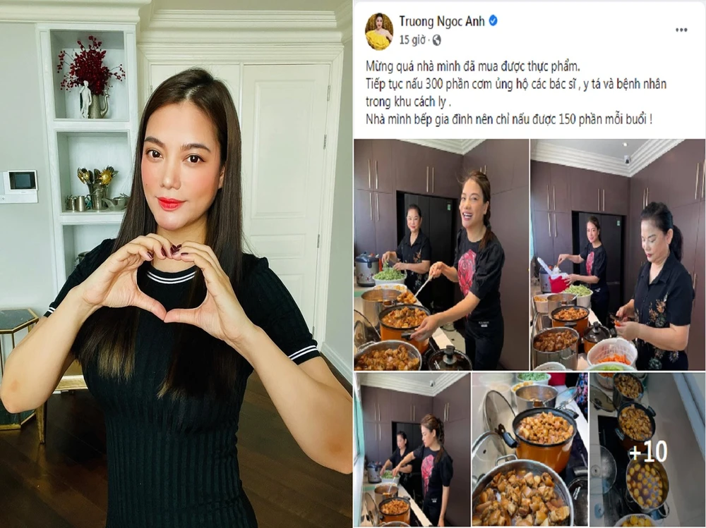 Trưa 17-7, nữ diễn viên Trương Ngọc Ánh cho biết mình và mẹ đang nấu 300 phần cơm ủng hộ cho các bác sĩ, y tá và bệnh nhân khu vực cách ly.