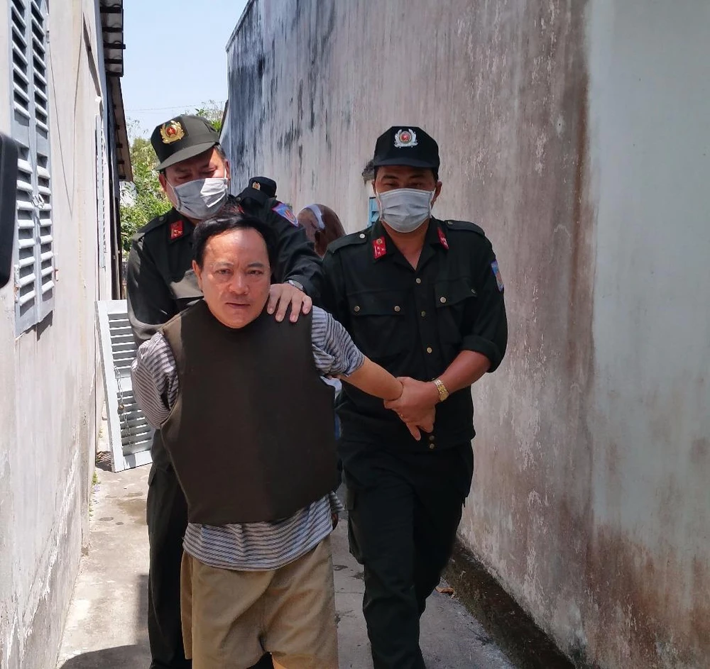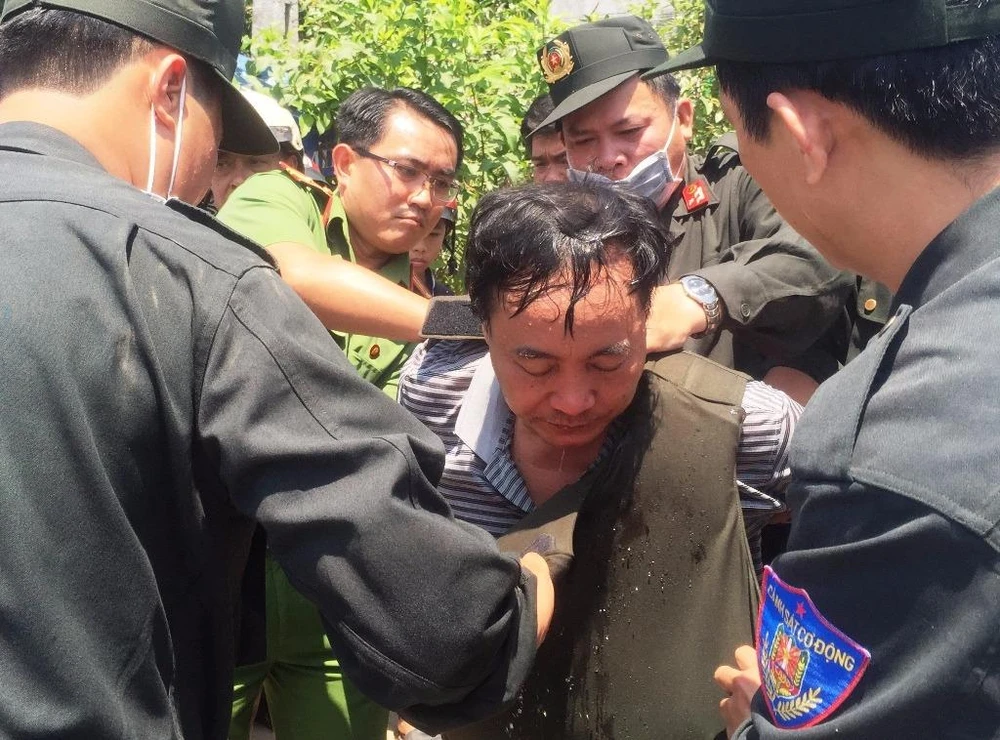 Công an khống chế và dẫn giải nghi phạm Trương Văn Ai (ảnh M.T)