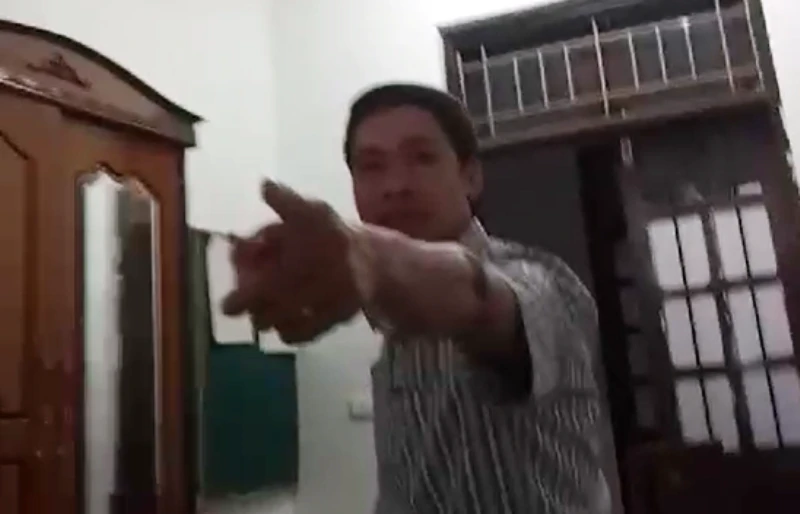 Ông Nguyễn Xuân Thảo chỉ tay quát nạt nữ đồng nghiệp. (Ảnh cắt từ video clip)