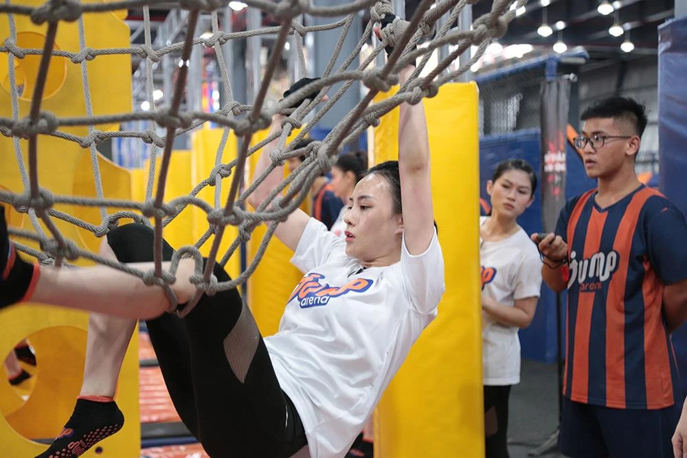 Bật bạt nhún với thử thách khởi động mang tên Bật bạt nhún, mỗi thí sinh có hai phút để bật nhảy hết đường nhảy theo quy định. Nếu té ngã và chạm chân, tay vào thành bạt nhún, ứng viên phải quay lại vạch xuất phát. DJ Oxy và diễn viên Phương Anh Đào là cặp thi đấu đầu tiên. Rất quyết tâm chinh phục đích đến với thời gian ngắn nhất, song trong quá trình tập luyện, DJ Oxy liên tục ngã còn Phương Anh Đào lại thể hiện rõ sự bình tĩnh khi chinh phục thử thách. Kết quả, DJ Oxy và Phương Anh Đào về điểm cuối với thời gian 26 giây.