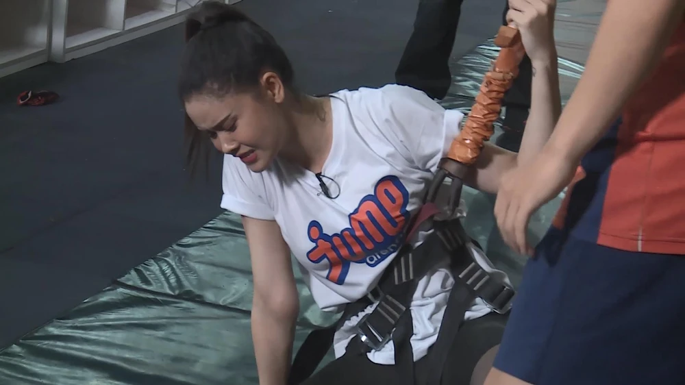 Sang cặp của diễn viên Ngọc Thanh Tâm và ca sĩ Jang Mi, hai nghệ sĩ có vóc dáng nhỏ bé không giấu được sự áp lực khi cặp thi đấu trước có kết quả khá khả quan. Do vội vàng trong lúc bật nhảy và phạm luật, Jang Mi phải quay trở lại vạch xuất phát khi đã đi được một nửa chặng đường. Ngọc Thanh Tâm vượt qua thử thách dễ dàng hơn Jang Mi. Cuối cùng cặp đôi chạm đích với thời gian 1 phút 19 giây. Nhận được rất nhiều sự động viên của các “đối thủ”, cặp Phương Oanh và Trương Quỳnh Anh tranh tài đầy sung sức. Nhưng do quá vội vàng giống Jang Mi, cặp đôi được host yêu cầu quay trở lại vạch xuất phát vì phạm luật. Và phải đến lượt thi thứ hai, cả hai mới thực hiện suôn sẻ và đúng với thời gian yêu cầu.