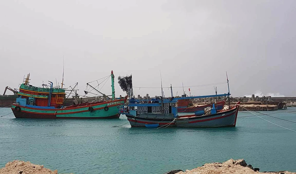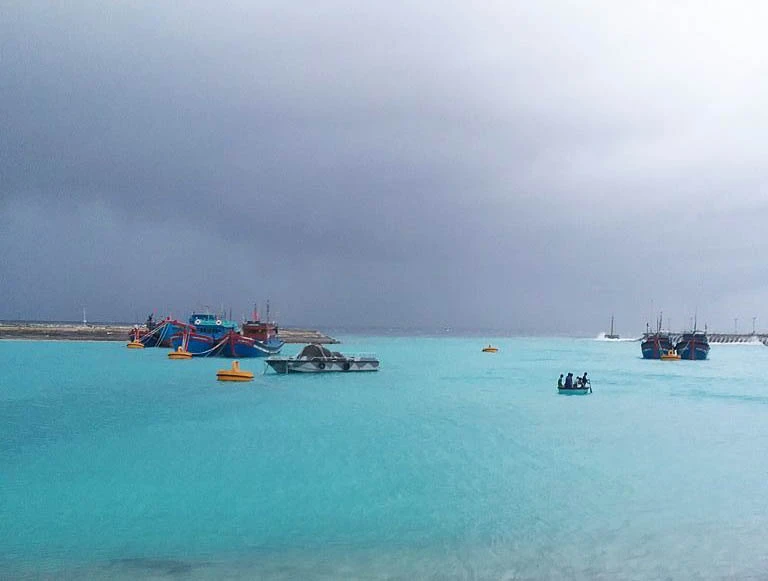 Tàu cá của ngư dân tránh bão tại đảo Trường Sa. Ảnh: ĐÀO PHƯƠNG CHI